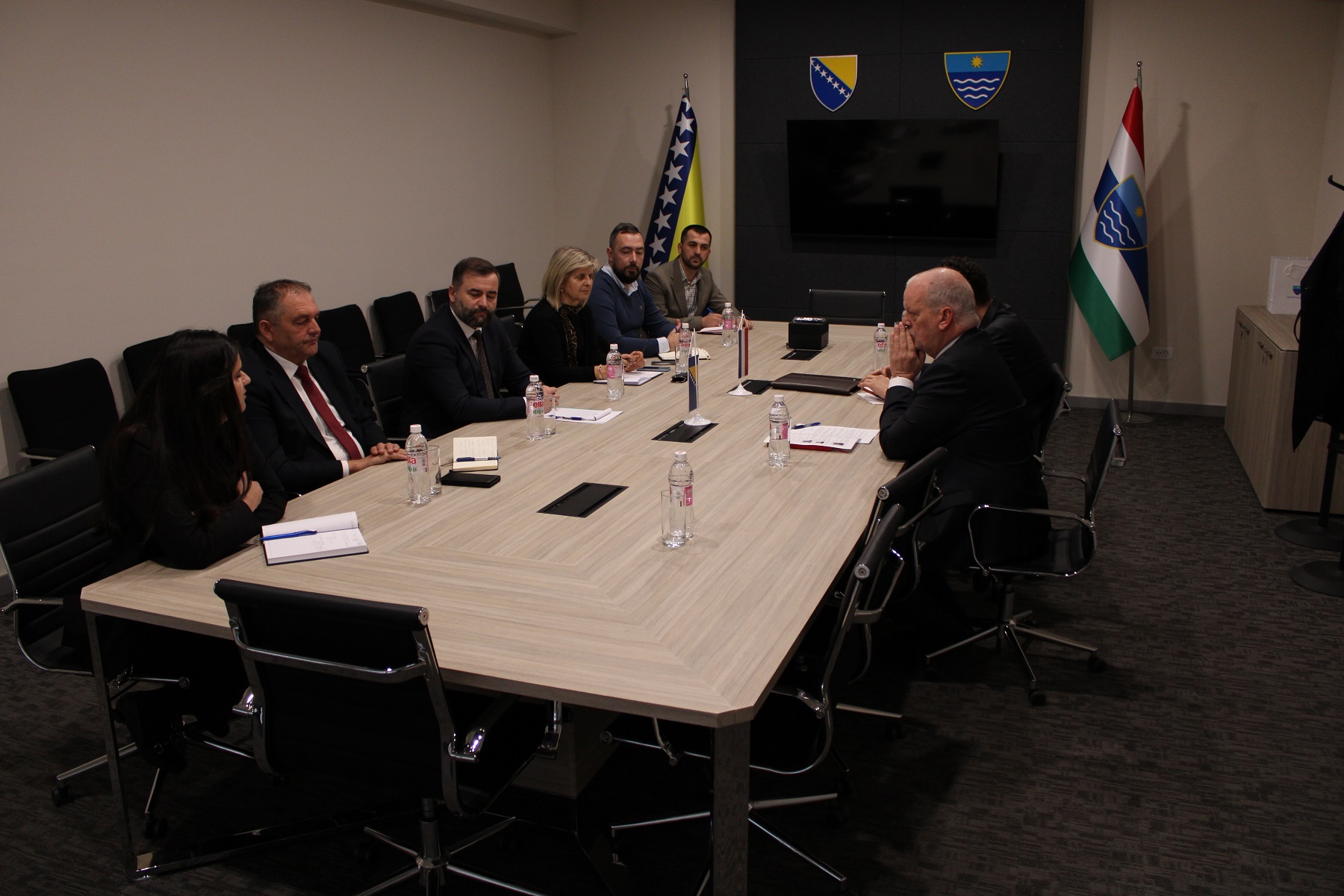 На састанку у наступној посјети, који се одржао данас у просторијама Скупштине Херцеговачко-неретванског кантона, предсједавајући Џафер Алић заједно са замјеницима предсједавајућег Томиславом Мартиновићем и Весном Сараџић размијенили су кључне информације с амбасадором Краљевине Низоземске, Њ.Е. Хенком ван ден Доол-ом. Главне теме разговора обухватиле су питања билатералне сарадње између двије земље, као и потенцијална подручја за унапређење сарадње на политичком, економском и културном плану.