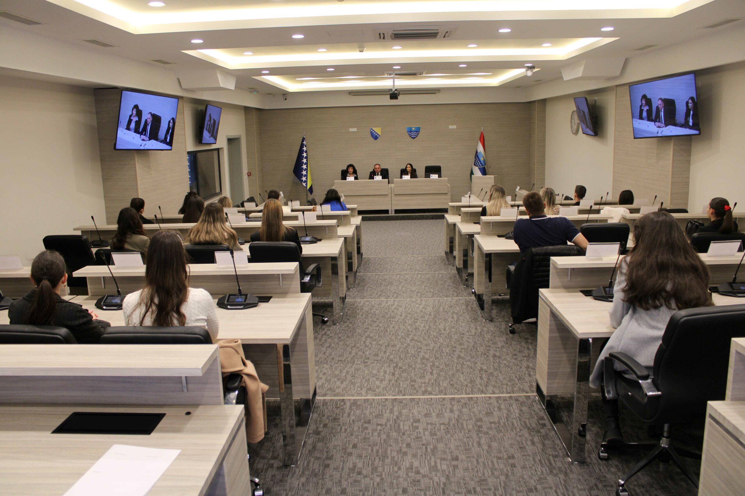 Будуће правнике о раду Скупштине као највећем законодавном тијелу кантона, њеним надлежностима и раду упознао је госп. Томислав Мартиновић, предсједавајући Дома народа Парламента ФБиХ и замјеник предсједавајућег Скупштине ХНК.